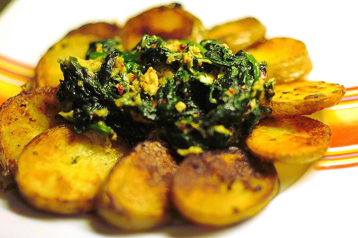 „Rührei und Spinat mit Bratkartoffeln“ ergibt eine hervorragende, je nach Portionsgrößen auch kalorienarme „Scheinfastenspeise“, die ggf. von der kompetenten Fastenbetreuung auf den Plan gesetzt wird – man kann sich in der Hinsicht einfach mal auf die „andere Seite“ verlassen. Das Vertrauen wächst dann mit dem Erfolg.
