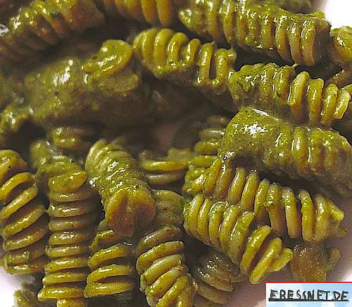 „Pasta mit Pesto“ schleicht sich als bekanntes Rezept langsam ins Deutsche Ernährungs-Bewusstein. „Pesto mit Ruccola“ ist bei akutem Basilikum-Mangel ein möglicher Ersatz – gemischte Nüsschen statt Pinien sind die bezahlbarere Wahl, und beim geriebenen Hartkäse gilt es ebenso, das Spektrum des Angebots zu nutzen.